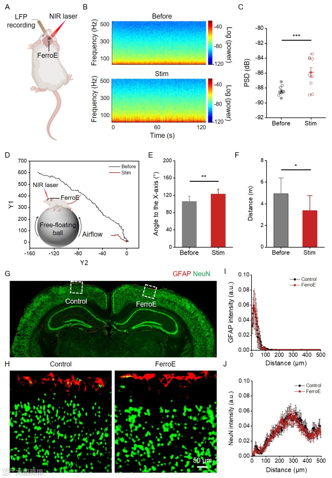 图5 FerroE对小鼠中枢神经的调控作用及其植入的生物安全性