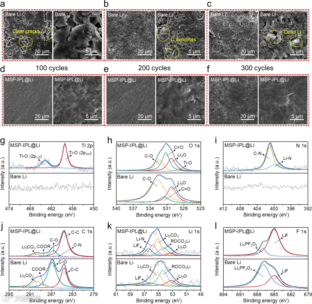 近日,南京大学化学化工学院李承辉教授团队联合金钟教授团队报道了一种利用钛(IV)–多酸(Ti-POMs)作为六齿连接体桥接有机和无机单元的金属超分子聚合物作为阳极界面保护层(MSP-IPL)。所构建的MSP-IPL具有高电化学稳定性、优异的离子传输能力和良好的空气稳定性。由于其优异的成膜性和机械韧性,MSP-IPL能有效避免由尖端效应引起的非均匀锂沉积,从而抑制锂枝晶生长。聚合物骨架中均匀分布的Ti-POMs可高效结合PF6−阴离子,从而提高Li+迁移数(tLi+ = 0.607)并促进Li+均匀分布。动态配位键赋予的再加工性和自修复能力使MSP-IPL能够适应电极体积变化并保持良好的界面接触。实验表明,MSP-IPL包覆的Li||NCM811电池在–20 ℃下循环超500次后容量保持率达86.8%,展现出优异的低温耐受性和循环稳定性。该工作为锂金属电池界面稳定化提供了基于金属–超分子聚合物的新策略。“Titanium-Polyoxometalate Crosslinked Metallo-Supramolecular Polymer as Artificial Interfacial Layer for Highly Persistent and Low-Temperature Tolerant Lithium Metal Batteries”为题发表在最新一期的《Angew. Chem. Int. Ed.》。南京大学博士研究生王耀达和副研究员赵培臣为论文共同第一作者,李承辉教授和金钟教授为论文的共同通讯作者。