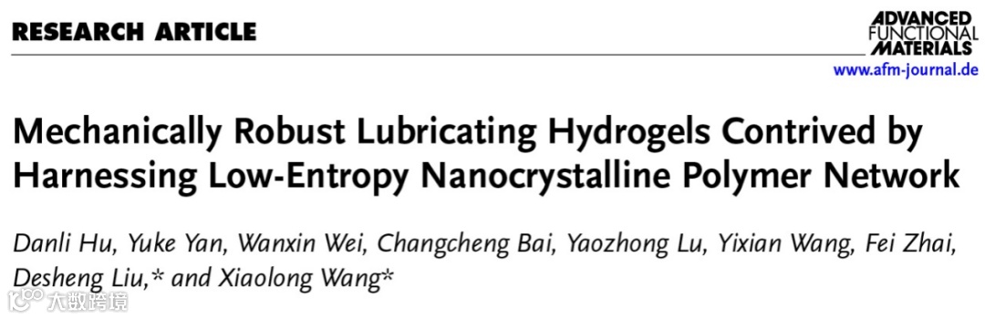 文章信息:Danli Hu, Yuke Yan, Wanxin Wei, Changcheng Bai, Yaozhong Lu, Yixian Wang, Fei Zhai, Desheng Liu*, Xiaolong Wang*, Mechanically Robust Lubricating Hydrogels Contrived by Harnessing Low-Entropy Nanocrystalline Polymer Network, Advanced Functional Materials, 2025, 2508450.