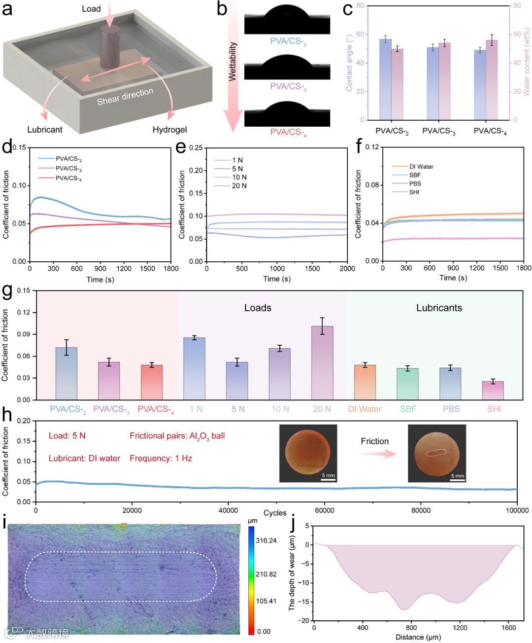 图3. 低熵纳米晶域网络水凝胶的摩擦学性能