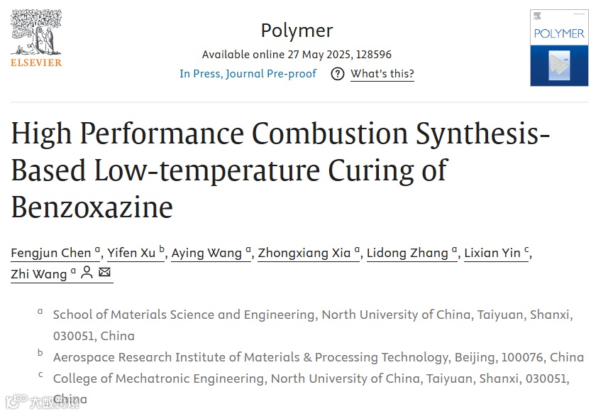 近日,中北大学王智教授课题组针对降低苯并噁嗪的固化温度这一领域,深入研究了燃烧合成法在苯并噁嗪体系中的应用,在《Polymer》期刊发表名为:“High Performance Combustion Synthesis-Based Low-temperature Curing of Benzoxazine”的文章。该文章基于燃烧合成原理,使用In(NO3) 3和Ga(NO3)3作为氧化剂,乙酰丙酮(AcAcH)作为燃料。通过形成过渡金属硝酸盐和乙酰丙酮的前体复合物,将自发和连续的氧化还原反应生成的热量引入到苯并噁嗪的固化过程。该文章研究了不同过渡金属硝酸盐的燃烧合成对苯并噁嗪性质的影响,并尝试使用较少的过渡金属硝酸盐达到预期效果。研究结果表明,随着前驱体含量的增加,苯并噁嗪的固化温度逐渐降低。
