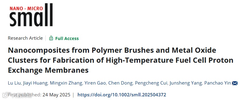 以上成果近期以“Nanocomposites from Polymer Brushes and Metal Oxide Clusters for Fabrication of High-Temperature Fuel Cell Proton Exchange Membranes”为题发表在国际著名期刊《Small》上。文章的第一作者为华南理工大学博士生刘禄,通讯作者为华南理工大学殷盼超教授。