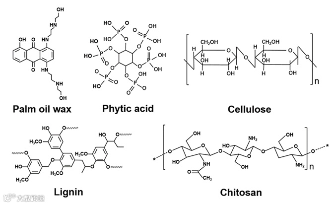 图2. 用于疏水织物制备的天然原料