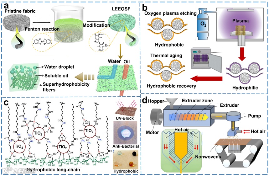 系统介绍了界面润湿性机理、可用于疏水织物制备的天然材料和具有启发性的疏水织物制备策略。