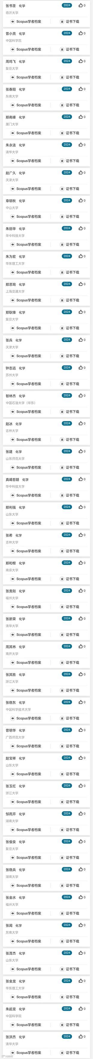 以下为化学领域具体入选学者名单: