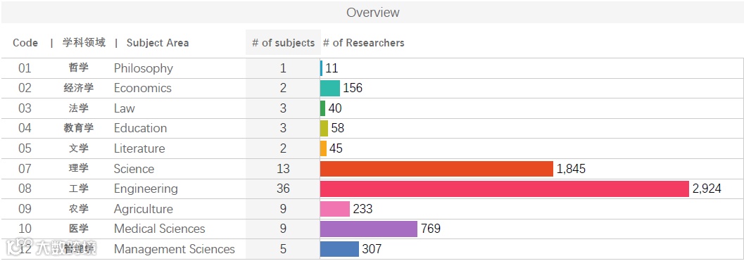 基础数据提取使用了进一步优化并更新后的爱思唯尔教育部一级学科分类映射(已覆盖111个学科),使得中国学者的学科归属、学科表现等方面的数据更加直观地、系统性的得到了展现;(如:其中工学-36个细分方向,理学-13个细分方向,医学、农学9个细分方向) 且让更具中国区域特色的细分学科领域中有卓越表现的学者进入到大家的视野中。