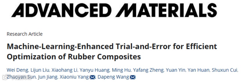 综上所述,与传统机器学习方案试图取代试错法不同,作者提出利用机器学习技术增强传统试错法的策略,在保留试错法可提炼数据经验规律的同时,极大的提升了优化效率。目前,该方法已应用于高技术领域,并有望拓展至其他适用于试错法的领域。相关成果以“Machine-Learning-Enhanced Trial-and-Error for Efficient Optimization of Rubber Composites”为题发表在《Advanced materials》上。第一作者为中国科学院长春应用化学研究所的邓伟博士,通讯作者为长春应化所杨小牛研究员和王大鹏研究员。