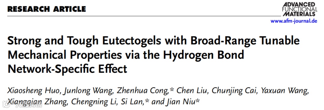 该研究以题为“Strong and Tough Eutectogels with Broad-Range Tunable Mechanical Properties via the Hydrogen Bond Network-Specific Effect”的论文发表在最新一期《Advanced Functional Materials》上,南京理工大学2022级硕士研究生霍骁胜为论文第一作者。