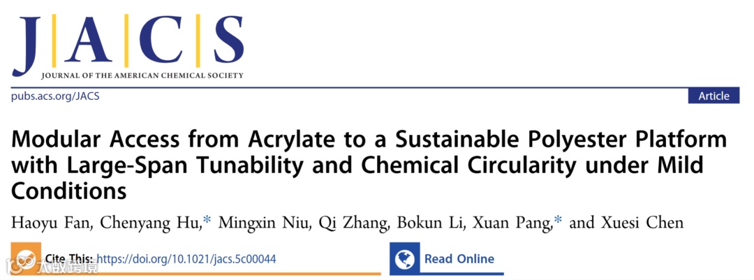 该成果于2025年3月4日以“Modular Access from Acrylate to a Sustainable Polyester Platform with Large-Span Tunability and Chemical Circularity under Mild Conditions”为题发表于《Journal of the American Chemical Society》,中科院长春应化所硕士研究生范浩宇为论文的第一作者。该工作得到了陈学思院士的倾心指导与帮助。该研究得到国家自然科学基金委和中国科学院的支持。