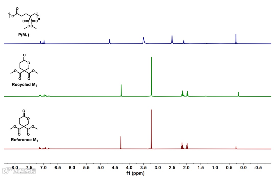 另外本工作单体中独特的偕二甲基效应有效促进分子内环化,克服了戊内酯基聚合物解聚条件苛刻的缺点,所有聚酯材料在温和条件下(80°C,常压)均可高效解聚回收单体(图5)。而作为对比,常规六元环戊内酯基聚合物的解聚需要在非常极端的条件下才能有效进行(>150°C,真空),凸显了本工作聚酯的温和条件闭环回收性,为其作为新型简便回收材料奠定了基础。