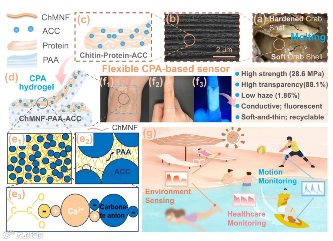 Yamei Zao, Muqiu You, Jieru Ma, Xiaoyu Du, Yongcan Jin, Dagang Li, Zhaoyang Xu, Chuchu Chen*. Synthesis of robust yet flexible and transparent CPA hydrogels inspired by molting crab shells, Green Chem, 2025. DOI: 10.1039/D4GC05711B