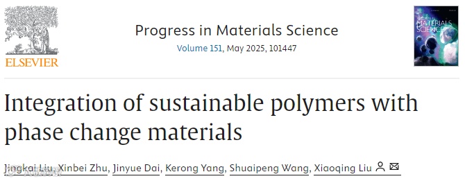 基于相变材料(PCMs)的潜热储存技术具有平衡用能时空差异、提高用能效率等作用,是缓解能源环境问题的有力工具。使用多形式聚合物基体来封装或化学键合PCMs有利于提升PCMs的热/力性能和抗泄露性,并赋予其先进功能性,但传统聚合物的不可持续问题已经引起了各界的广泛关注。近年来,基于“原料可再生、弃料可回收”的可持续聚合物在用于复合PCMs(FSPCMs)方面进展迅速,其不仅展现了可调的综合性能,还表现出灵活的分子可设计性和本征功能性(如阻燃、抗菌等),并能够显著降低生产和使用过程的碳足迹。