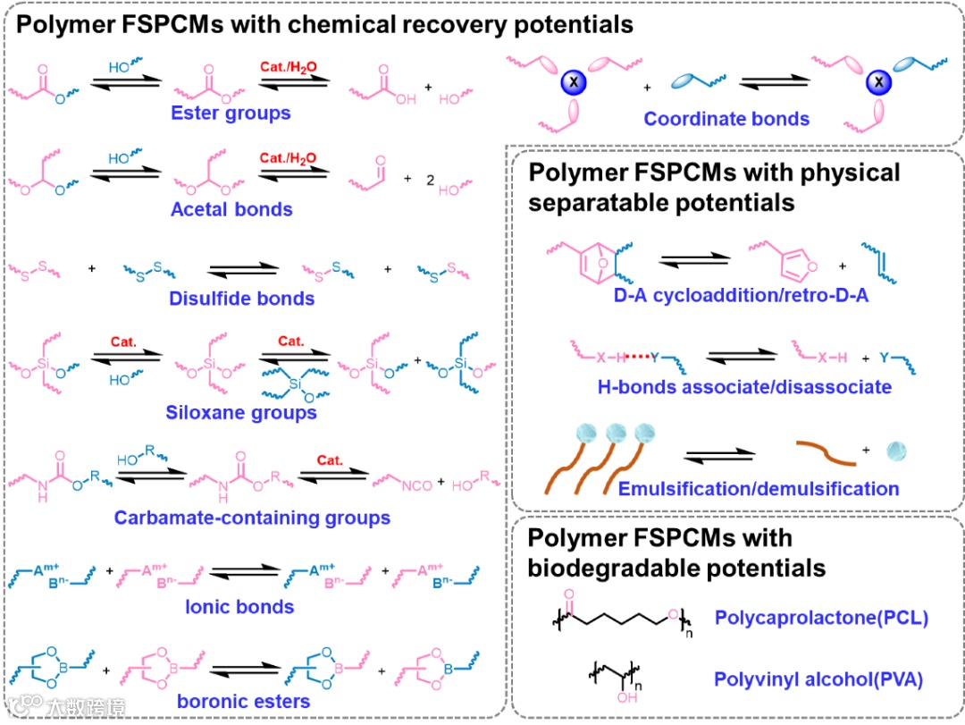 图4. 用于可回收聚合物基FSPCMs中的“不稳定键”
