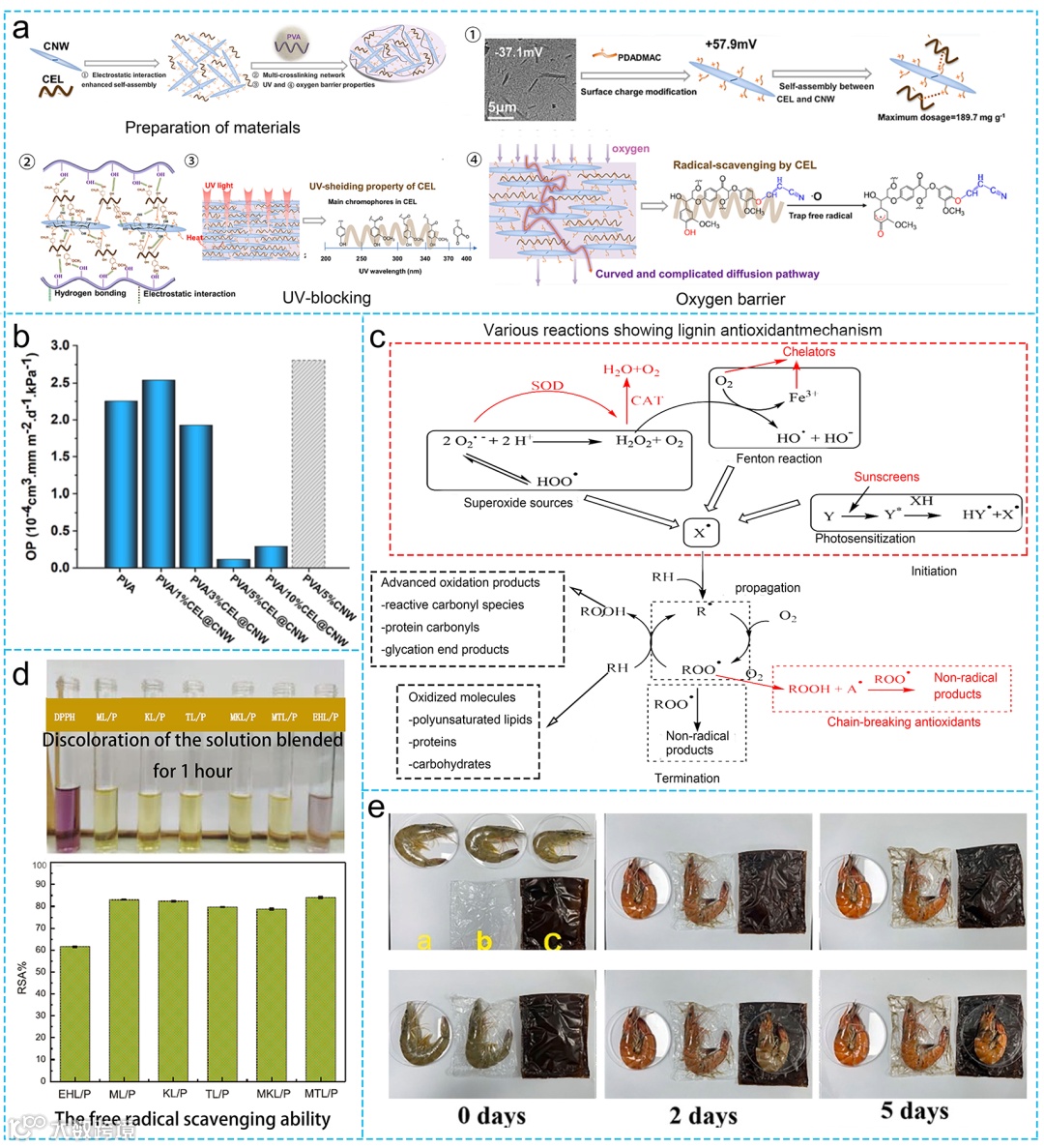 图3. 木质素基复合材料的氧气阻隔机理和性能