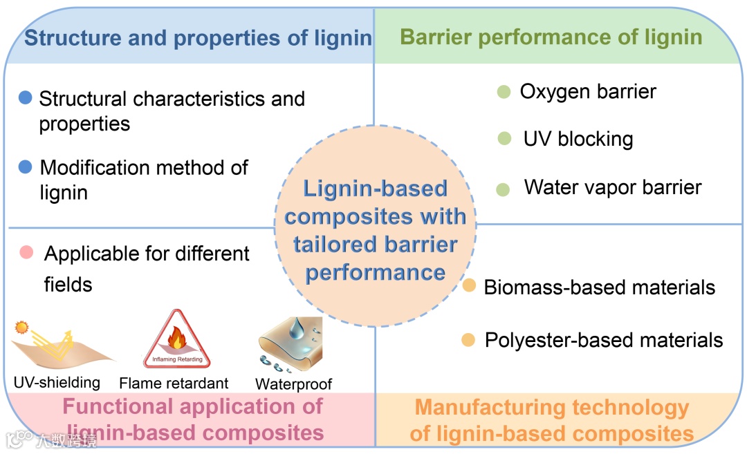 此外,木质素独特的化学结构和物化特性使得其复合膜材料具有多重阻隔性能,为功能性生物质基复合材料的制备和导向应用提供多种选择。