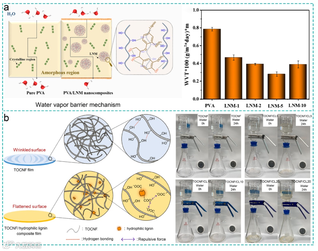图4. 木质素基复合材料的水蒸气阻隔性能