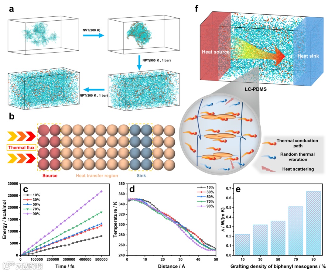 在大分子链上接枝液晶基元有利于PDMS本征导热性能的提升,但PDMS主链稳定性过高,不易发生反应,导致液晶基元的接枝密度过低,其本征导热性能提升有限。