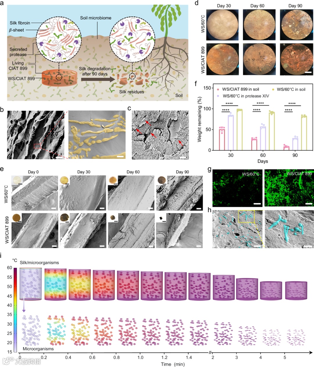 图5: 活性丝蛋白塑料在土壤中的降解。