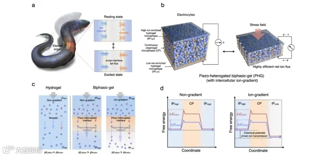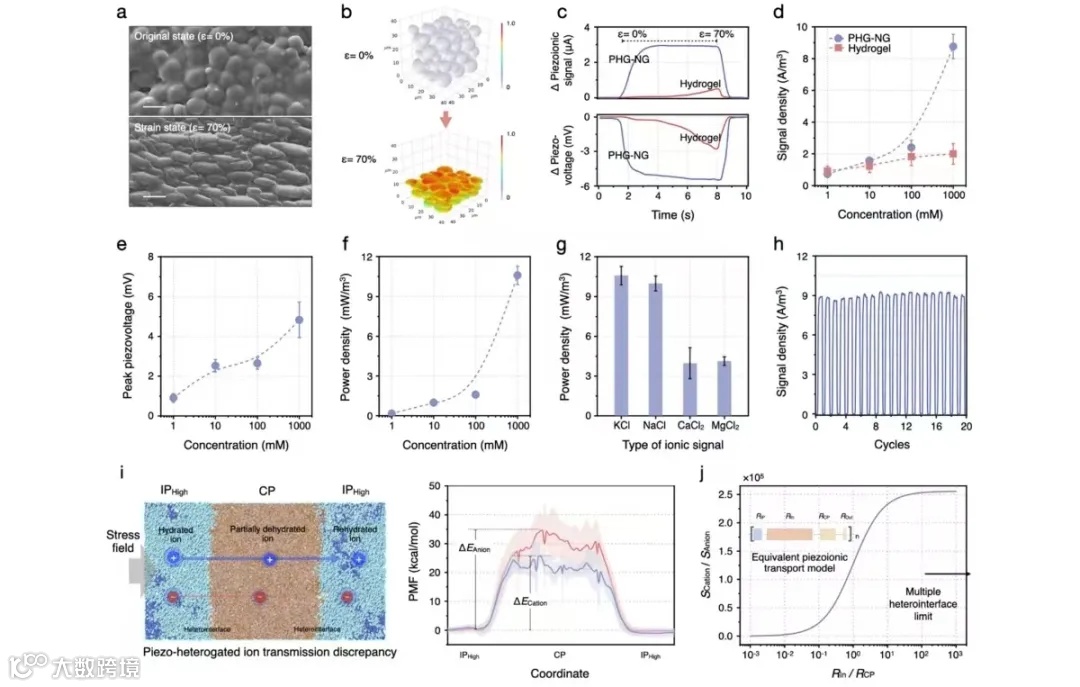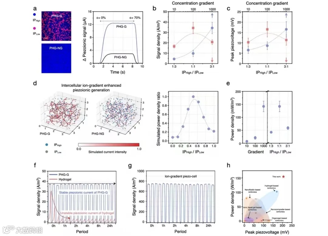 离子基柔性压电材料能够响应外部机械刺激并产生离子电流,同时克服传统电子设备与生物组织之间的模量不匹配问题,从而实现与神经组织的复杂软交互。这种材料产生的压电能量具备高生物相容性,可作为柔性电源,广泛应用于生物传感器和可植入设备等领域。然而,现有压电材料中阳离子和阴离子在应力场下传输差异受到限制,从而降低了离子电能的转换效率。因此,大多数压电系统的功率密度较低,限制了其在能量转换和信号传输中的实际应用。这一问题主要归因均相离电材料中阳离子和阴离子的迁移能垒相近,阻碍了其传输差异化的实现。