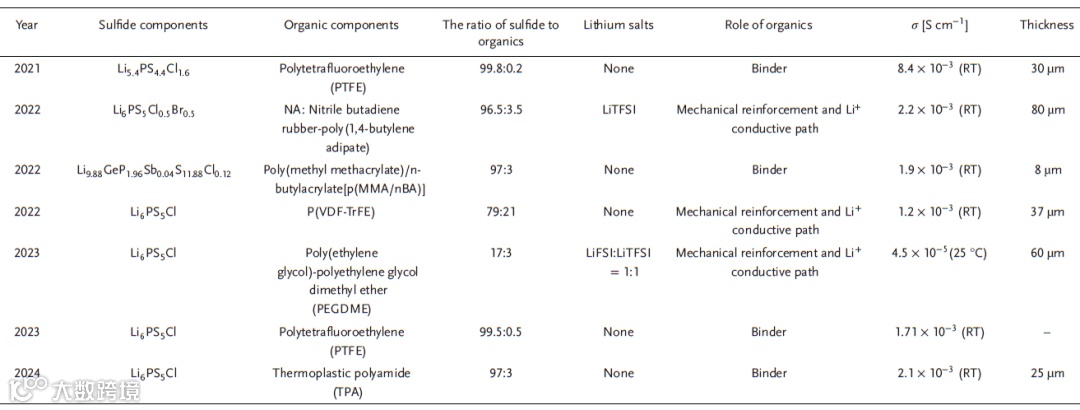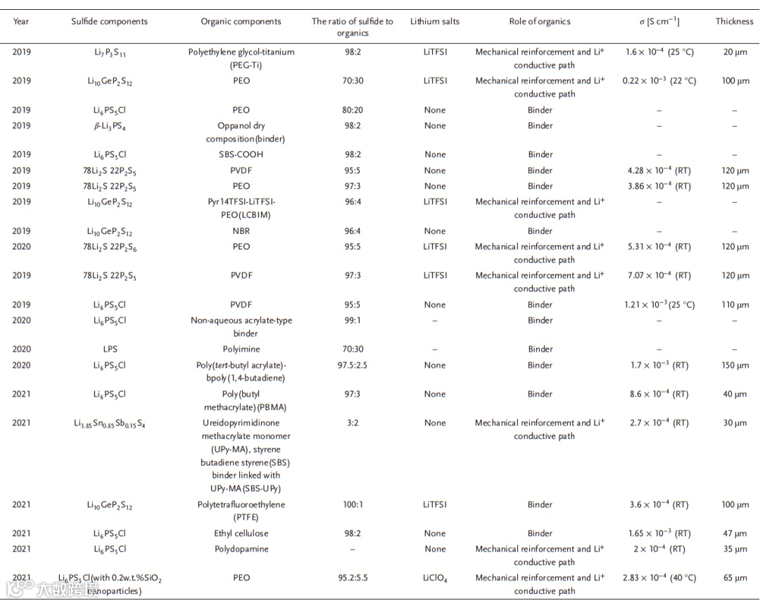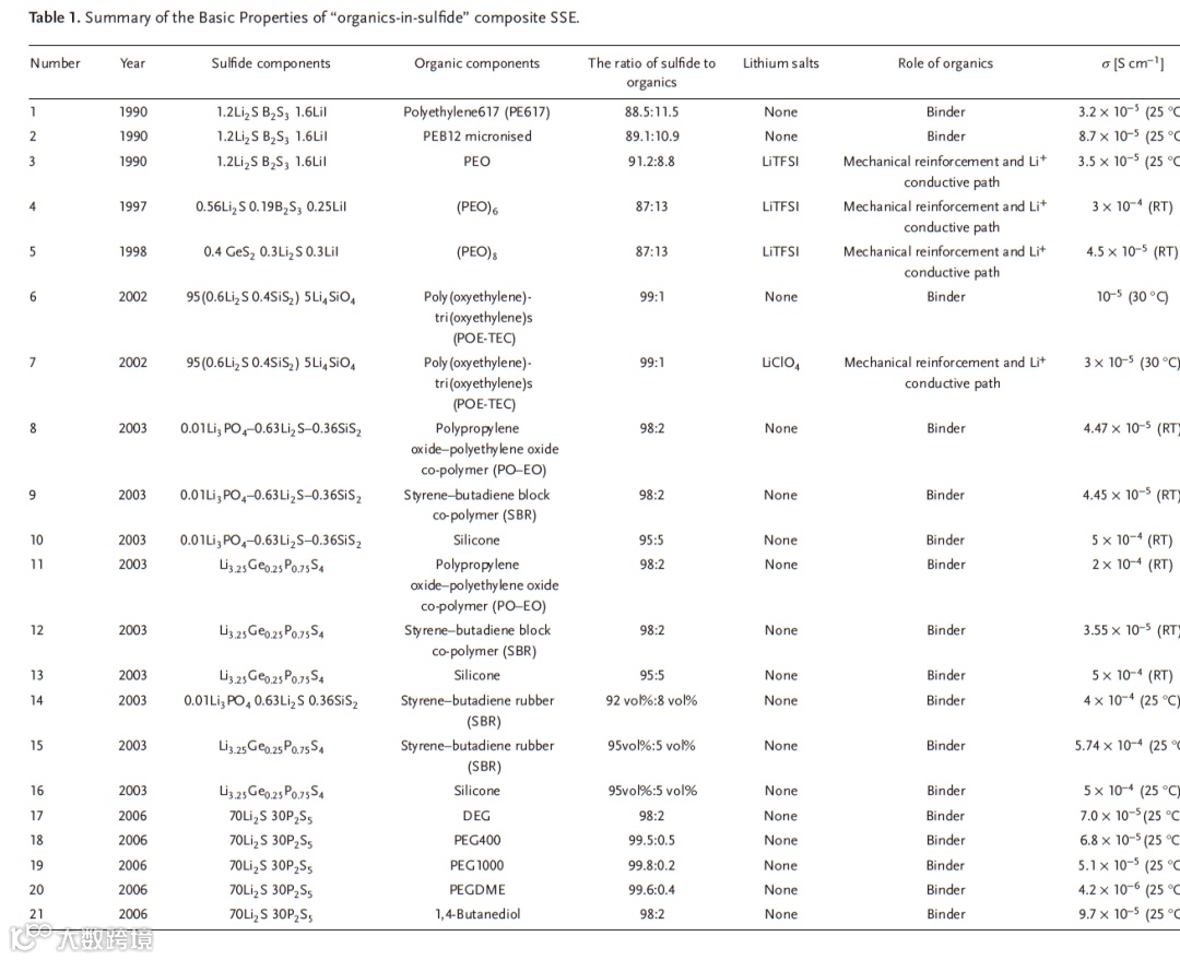 Table 1 Summary of the Basic Properties of “organics-in-sulfide” composite SSE