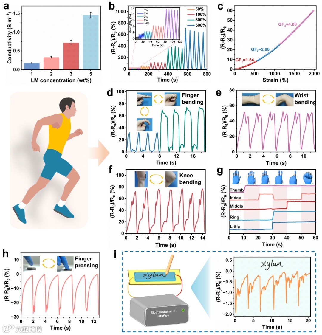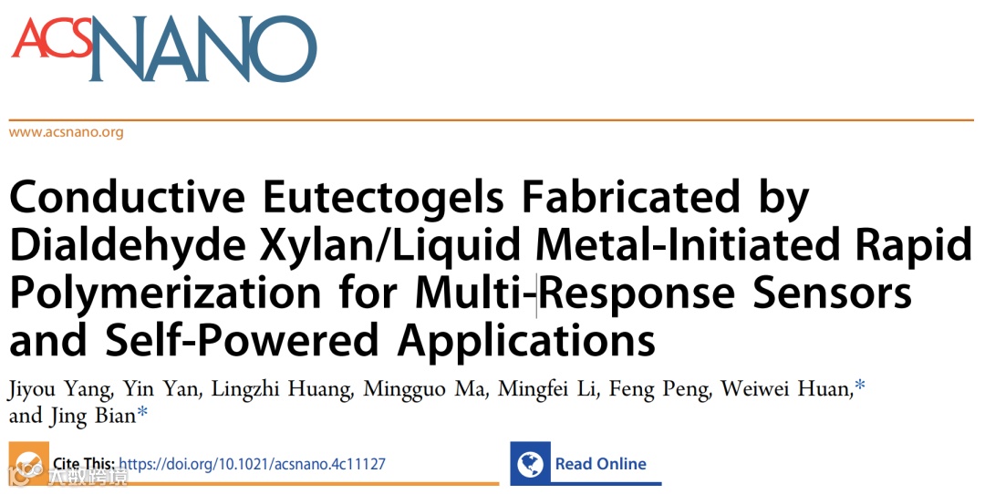 相关研究成果以“Conductive Eutectogels Fabricated by Dialdehyde Xylan/Liquid Metal-Initiated Rapid Polymerization for Multi-Response Sensors and Self-Powered Applications”为题发表在期刊《ACS Nano》上。