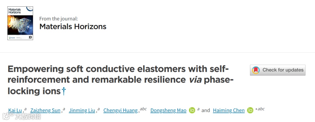 2024年10月16日,该项研究以“Empowering Soft Conductive Elastomers with Self-Reinforcement and Remarkable Resilience via Phase-Locking Ions”为题发表在《Materials Horizons》。文章的第一作者是宁波材料所2021级硕士研究生陆凯,陈海明副研究员为唯一通讯作者。