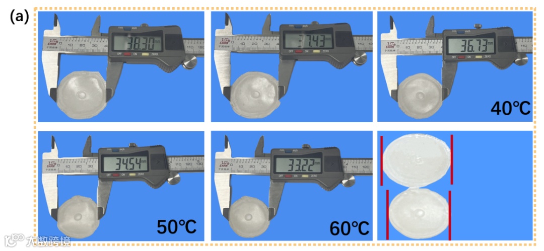 图4. NaCl/SA/PAM/PNIPAM/CaCO3水凝胶温敏性能分析