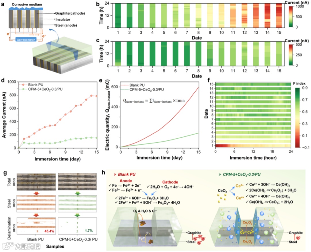 图4 基于电偶腐蚀传感器的实时腐蚀监测及复合涂层的主动腐蚀防护机理