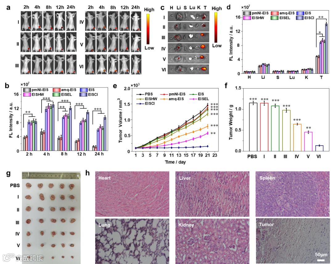 图3. 超分子共价抑制剂EISCI的体内肿瘤治疗疗效。