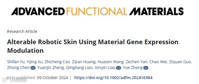 近日,北京科技大学前沿交叉科学技术研究院张跃院士和厦门大学电子科学与技术学院廖新勤、陈忠等人从生物进化中的基因表达原理中汲取灵感,开发了一种由同质单元构成的可变机器人皮肤。该人工皮肤通过可逆材料的诱导分化与热水解回收,可以周期性地调整其固有特性,类似于生物体中的基因表达。与传统的功能单一的传感方案不同,这种设计允许源于组分的均质材料基元仅通过诱导条件变化从而激活多种触摸感知功能,比如位置、压力和动态触觉等(图1b)。这种可变性显著提升了系统的多功能性和可持续性,降低了材料复杂性,并通过同质化结构的重新构建,实现了不同功能单元的定制化组合(图1f)。该工作以“Alterable Robotic Skin Using Material Gene Expression Modulation”为题发表在《Advanced Functional Materials》期刊上。论文第一作者为厦门大学电子科学与技术学院博士生于世凡。