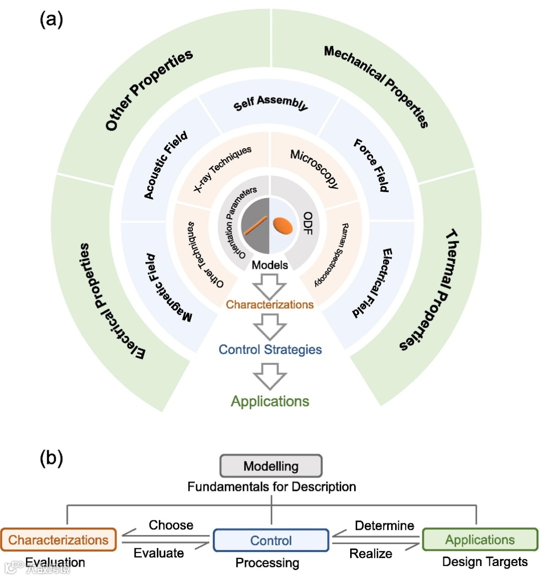 近日,重庆大学航空航天学院付绍云教授团队在国际材料科学研究领域顶级期刊《Progress in Materials Science》(IF = 33.6)上发表题为《Orientation of discontinuous fillers in polymer composites: modelling, characterization, control and applications》的综述,重点介绍了填料取向在聚合物复合材料加工-结构-性能关系中的作用(图1),总结了近年来非连续填料取向的建模、表征、控制和应用方面的研究进展,展望了其当前面临的挑战以及未来的发展方向。