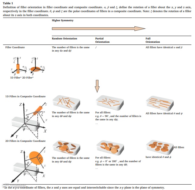 图2:填料坐标系和复合材料坐标系中填料方向的定义。