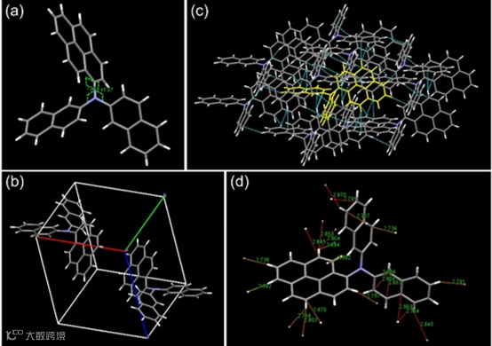 NaPy在晶胞中呈高度扭曲的构象,芘单元与两个萘环之间的二面角分别为 72.45o和 45.07o。