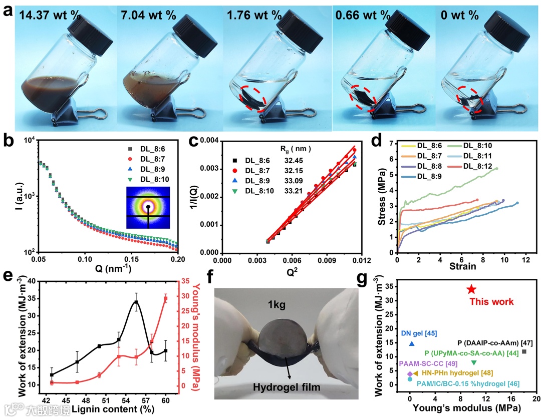 图 2 木质素基水凝胶膜的形成及力学性能。