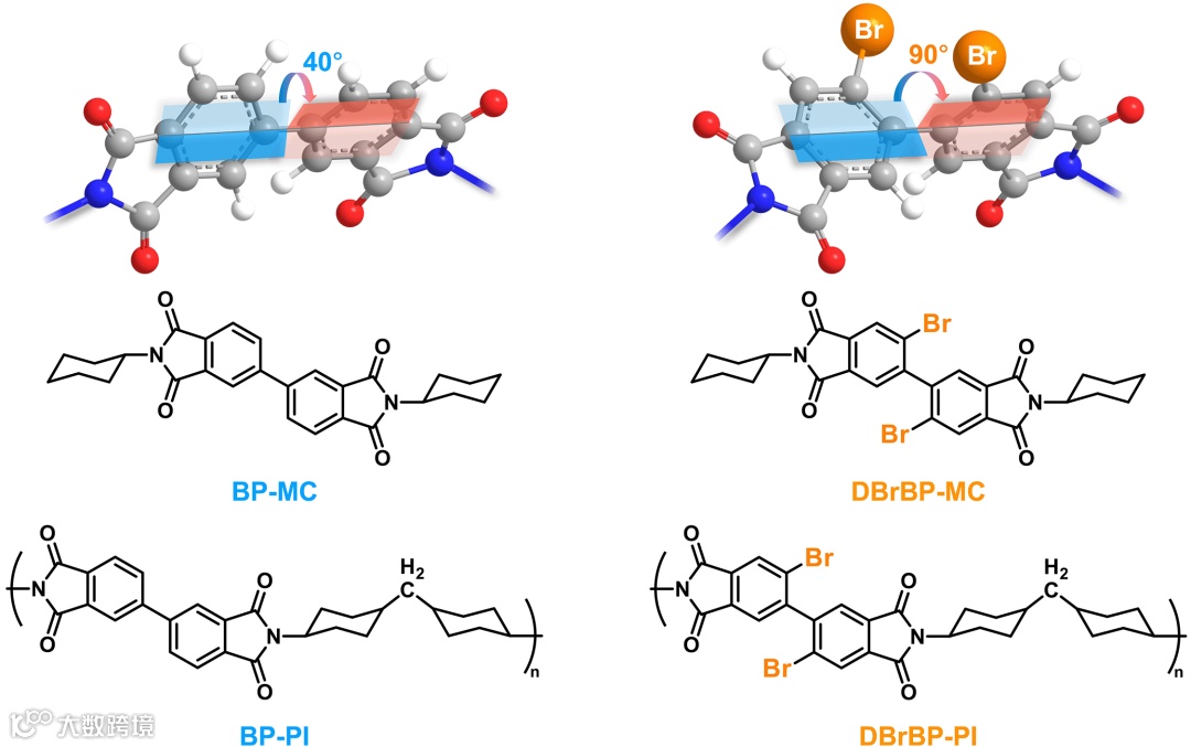 在材料科学领域,高分子聚集态对材料的光物理、机械和化学性能具有至关重要的影响。这些性能决定了高分子材料在电子、光学和生物医学等领域的应用潜力。为了研究荧光和磷光的双发光聚酰亚胺(PI)的聚集状态与光致发光机制之间的相关性,东京工业大学的安藤慎治(Shinji Ando)教授,刘浩男(Haonan Liu)助理教授和毕业生礒田隆一(Ryuichi Isoda)等人,使用金刚石压砧装置(DAC)在8 GPa的高压下,分析了荧光型BP-PI、磷光型DBrBP-PI(见图1)及其对应的酰亚胺模型化合物(BP-MC和DBrBP-MC,分散在PMMA薄膜中)的光物理过程。在365 nm激发下,DBrBP-PI在0.9 GPa的压力下观察到显著的压力诱导磷光增强(PIPE),这是有机聚合物中极为罕见的现象。研究成果以《Pressure-Induced Enhancement of Room-Temperature Phosphorescence in Heavy Halogen-Containing Imide and Polyimide》为题,于2024年7月25日(当地时间)在线发表于美国化学学会的《The Journal of Physical Chemistry B》期刊。