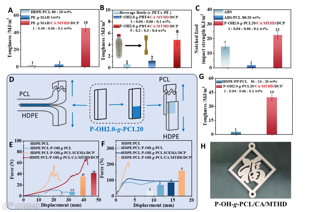 随着塑料制品消耗量的增加,塑料污染问题引起了人们的广泛关注。废旧塑料的循环利用是解决这一环境问题的重要方法,如何开发高效的废旧塑料回收及升级再造技术,延长塑料制品的生命周期是关键的科学问题。在现有的回收技术中,机械回收是解决日益严重的塑料污染问题的最简单、最经济的策略之一,但它难以应用于混合塑料体系,直接回收再利用混合塑料的主要挑战在于不同塑料之间的相容性差,导致混合塑料制品机械性能急剧衰退。