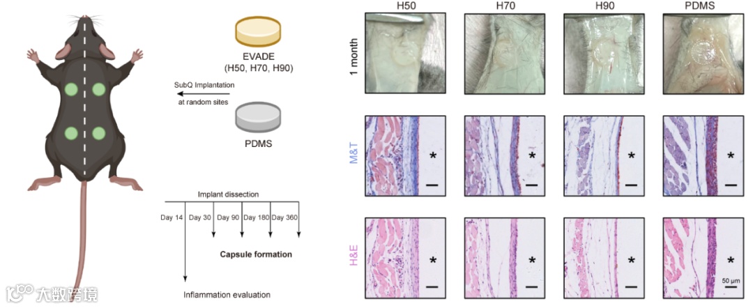 图2 EVADE弹性体在小鼠皮下植入一个月后所引发的纤维化反应评估