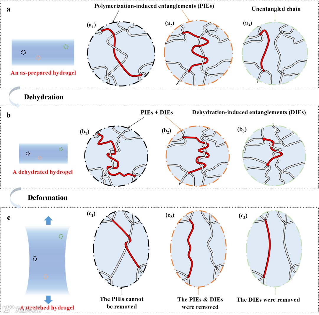 1. 结合低交联与脱水诱导缠结的增韧、抗疲劳设计策略