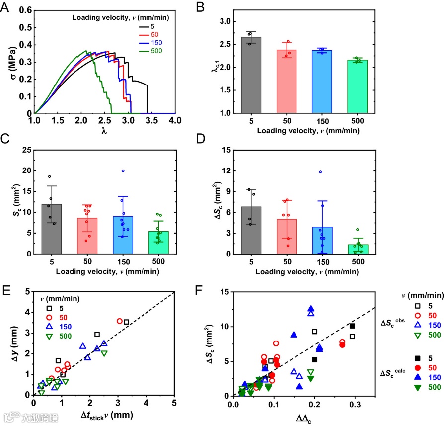 图3. 在模式-I纯剪切断裂试验中观察到的加载速率对滞-滑裂纹扩展动态的影响。