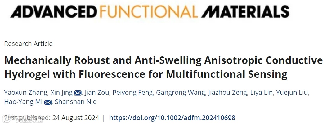 传统的水凝胶通常结构无序且交联松散,这导致其机械性能不尽如人意,严重阻碍了其实际应用。近年来,受生物体组织结构的启发,研究人员采用定向冷冻、电磁场诱导等方式在水凝胶内部成功构造了各向异性结构来制备强韧的水凝胶,但往往存在操作复杂且功能单一的问题。此外,水凝胶存在的溶胀问题极大限制了其在水下传感中的应用。