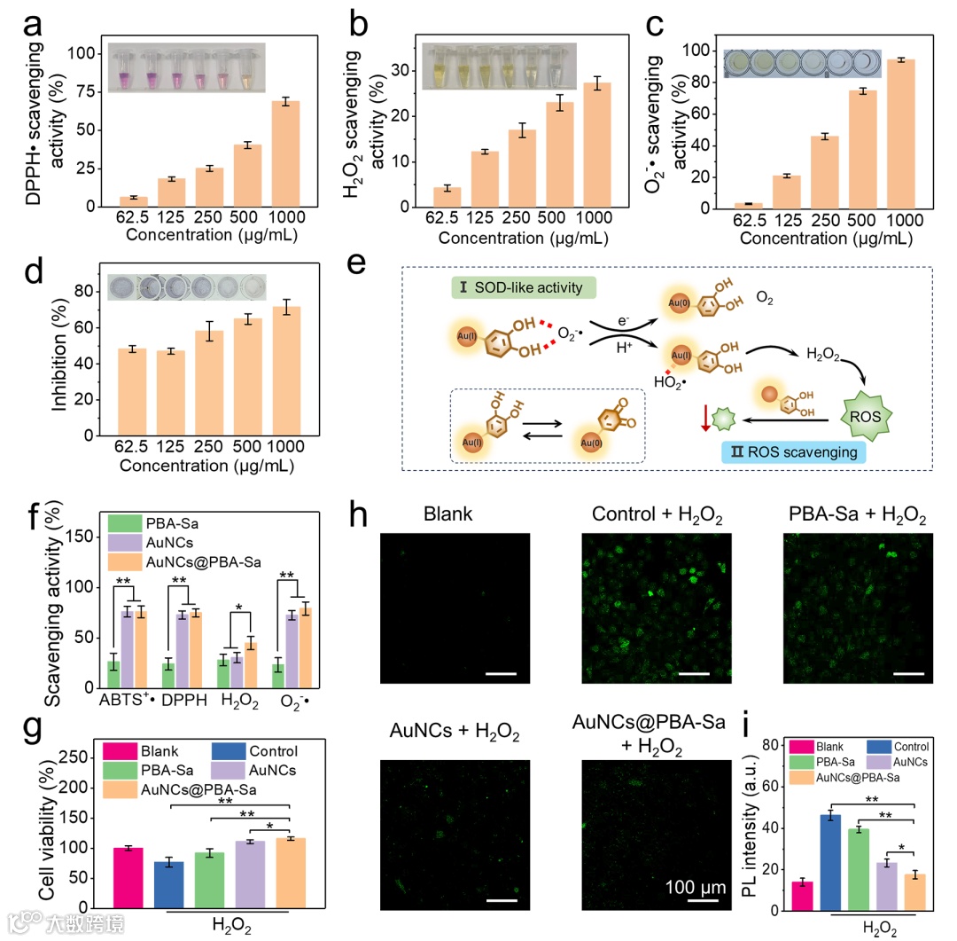 图4. AuNCs@PBA-Sa水凝胶的抗氧化性能