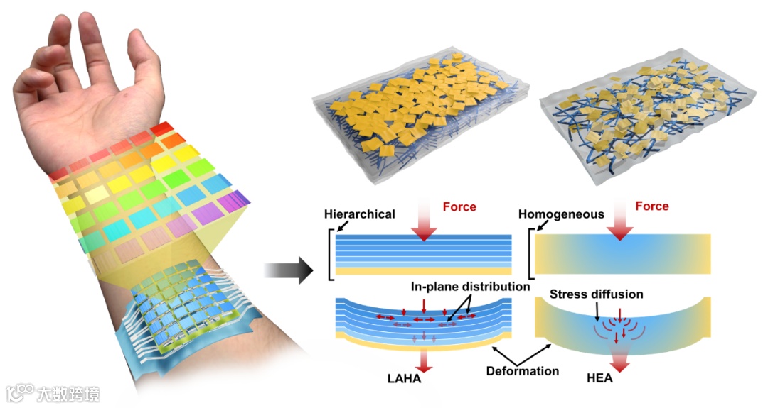 图1层压结构和均质结构垂直受力的机制差异及其在柔性电子阵列应用