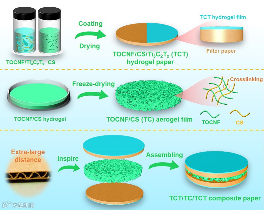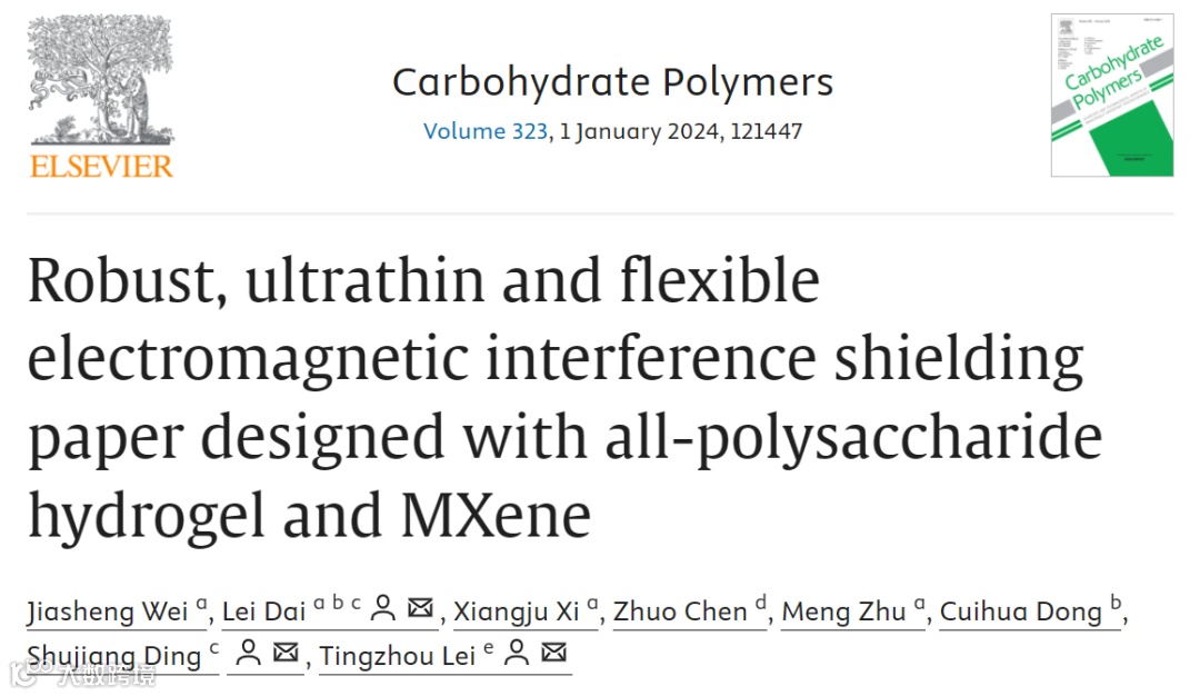 1. 基于全多糖水凝胶和MXene设计的电磁屏蔽纸