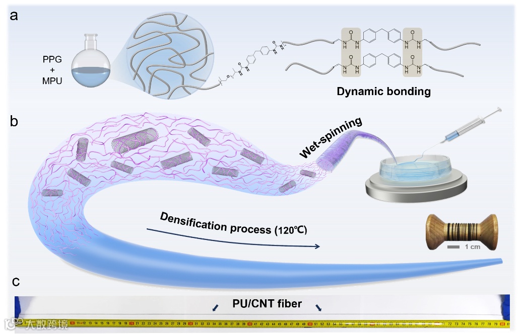 该研究复合聚脲和碳纳米管,制备出了具有卓越驱动性能的增强复合纤维。且通过各种形状的变化,包括1D、2D和3D形状之间的转换,展示了预编程的空间变形特性。该工作以“Wet-Spinning Carbon Nanotube/Shape Memory Polymer Composite Fibers with High Actuation Stress and Pre-designed Shape Change”为题发表在《Advanced Science》上(DOI:10.1002/advs.202404913)。本工作第一作者为博士生李梦,通讯作者为北京大学曹安源教授和郑州大学上媛媛副教授。该研究得到国家重点研发计划项目的支持。