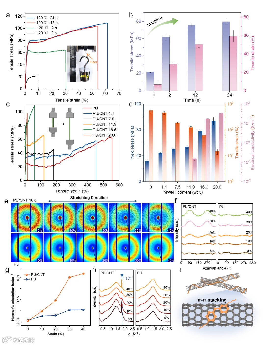图2:PU/CNT复合纤维力学性能及碳纳米管作用的分析