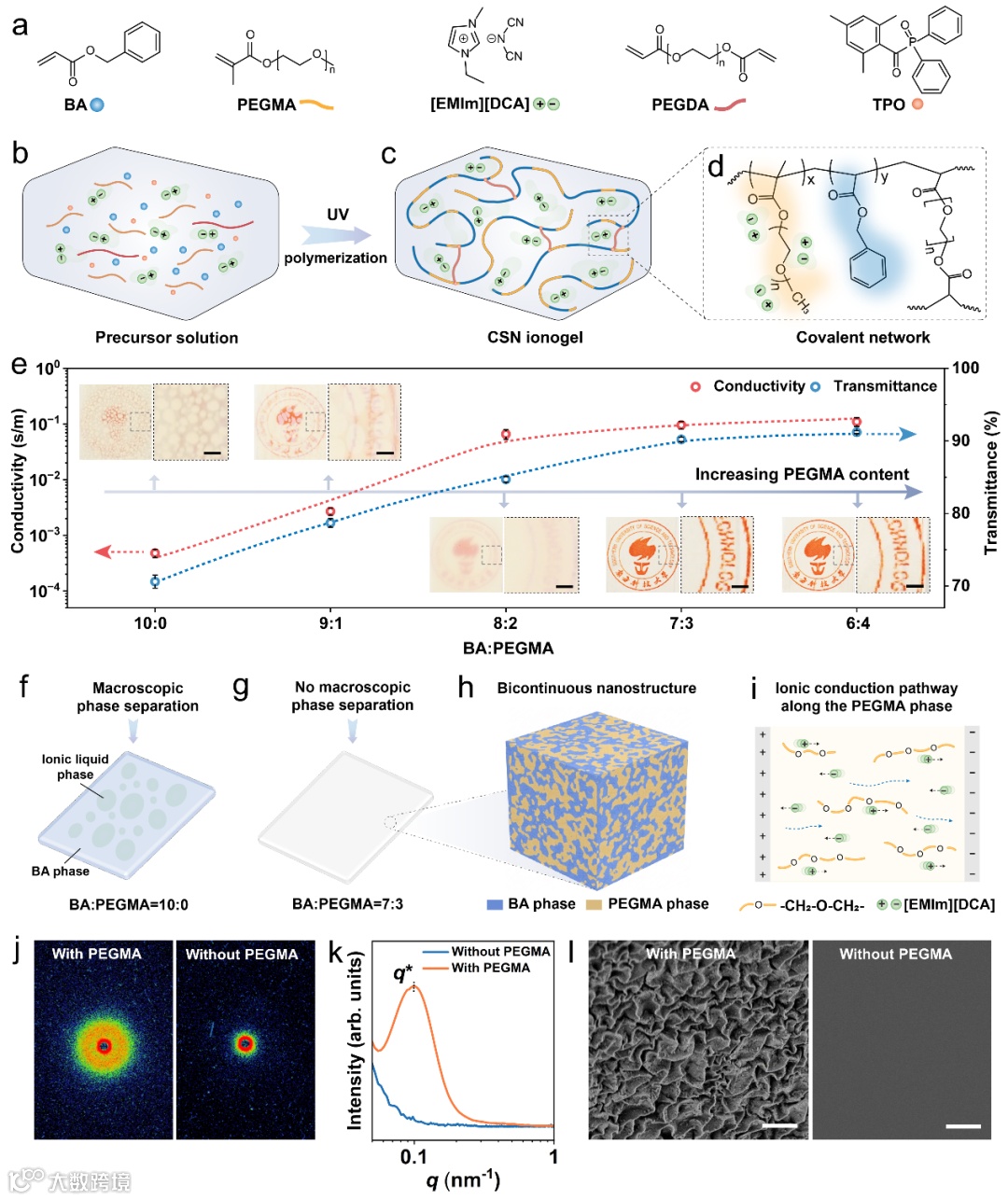 图1. 离子凝胶的制备及双连续相纳米结构表征
