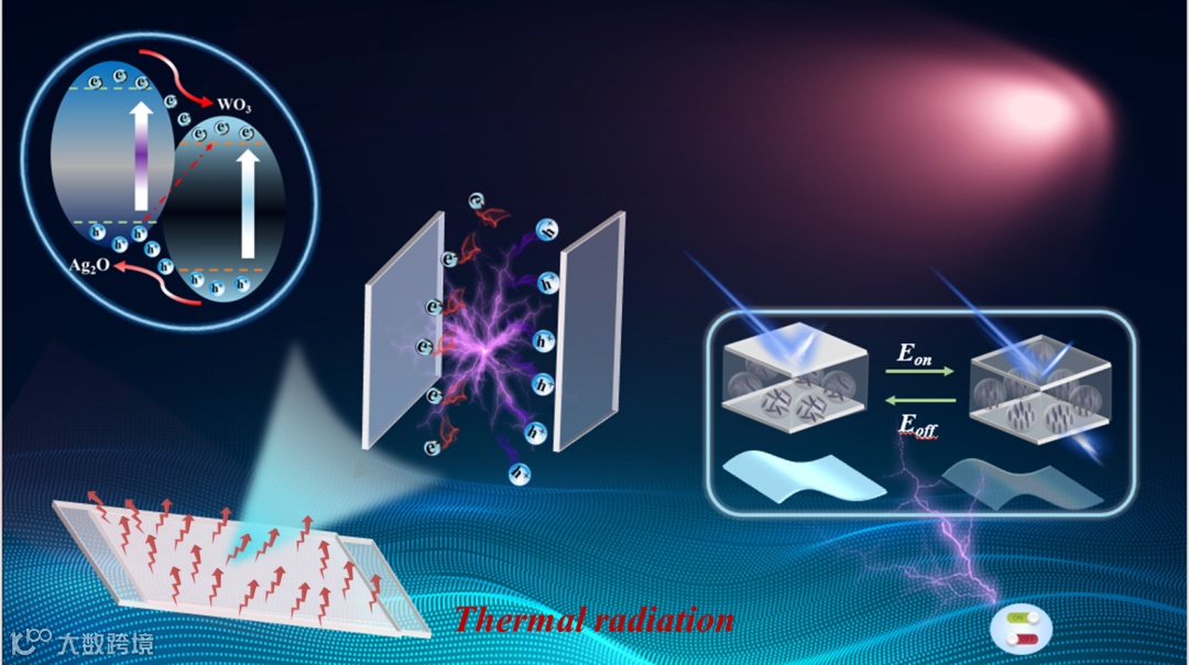 综上所述,采用共沉淀法成功合成了WO3/Ag2O p-n异质结,并将其集成到PDLC系统中。与原始PDLC膜相比,p-n异质结的存在可以显著改善其电光性能,大大降低饱和电压,提高对比度。其中一个原因是光产生的电子和空穴的自由运动降低了薄膜的阻抗。另外,在电场力的作用下,部分电子和空穴会向电极表面迁移,导致两极间瞬态光电电压升高,饱和电压降低。同时,无机纳米粒子的加入增加了散射中心的数量,有效地提高了膜的对比度。此外,薄膜独特的微观结构和丰富的表面红外发射基团使其具有较高的红外发射率和优异的冷却性能。因此,本研究提供了一种新型高效节能智能窗的设计和制备方法。