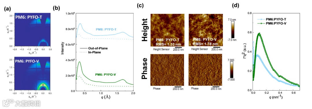 图3. 结晶性与相分离表征结果(GIWAXS, AFM and RSoXS)。