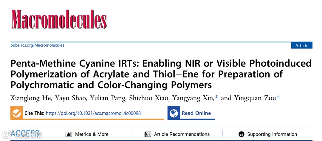北京师范大学邹应全教授团队长期致力于光聚合领域的相关研究(Polym Chem. 2023,14,1543-1553;Polymers. 2022,14,4588;Angew. Chem. Int. Ed. 2020,59,11440-11447;Mater. Des. 2022,213,110370;ACS Appl. Mater. Interfaces. 2022,14,48976-48985;Adv. Mater. Technol. 2023,2201939),旨在开发种类多样的光引发剂与光引发体系,以及各种类型的光聚合材料,进而助力光聚合领域的持续性发展。