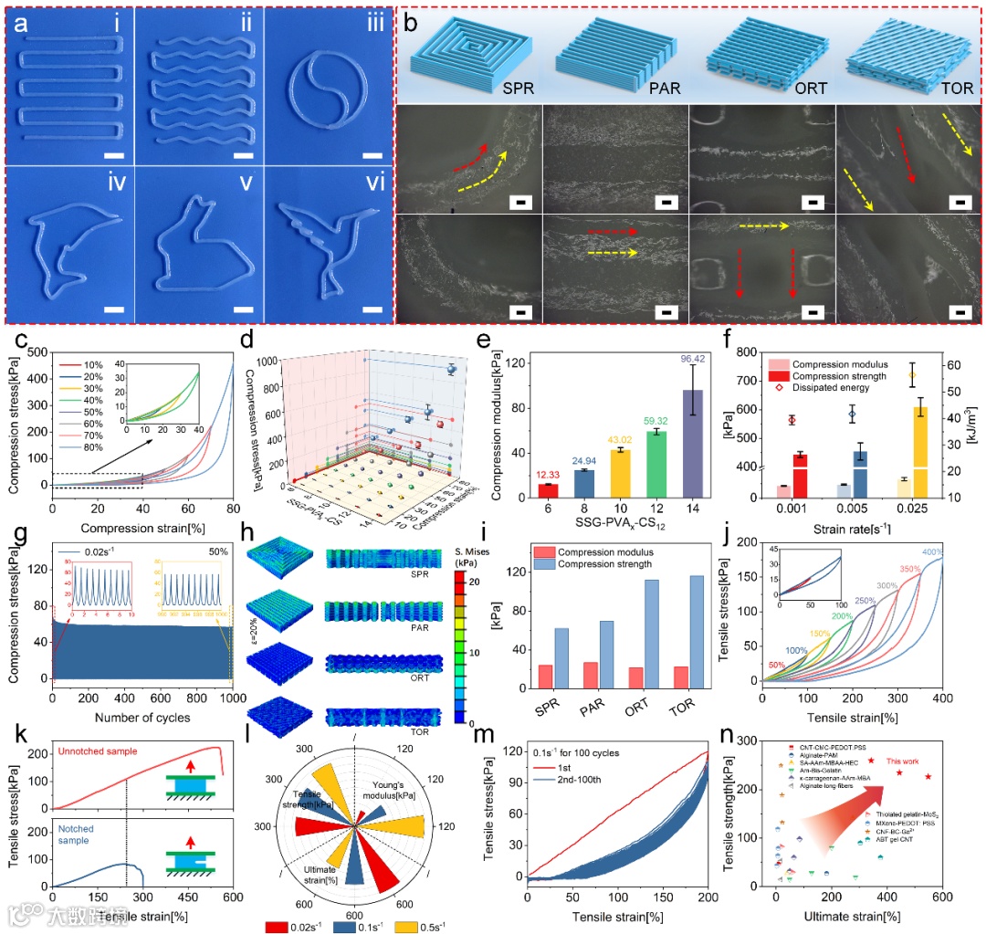图1. 剪切变硬复合材料的3D打印工艺及其理化性能表征